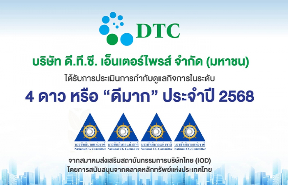 DTCENT สตรอง! คว้า CGR ระดับ 4 ดาว 2 ปีซ้อน