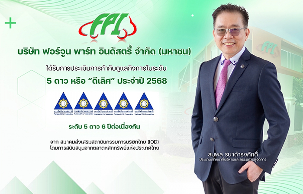 FPI คว้า CGR 5 ดาว “ดีเลิศ” 6 ปีซ้อน ตอกย้ำธรรมาภิบาลโปร่งใสยั่งยืน