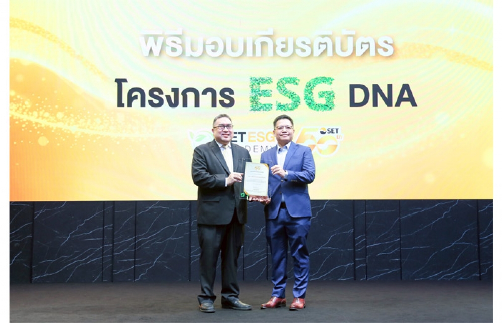 เมืองไทยประกันชีวิต รับมอบเกียรติบัตร “ESG DNA” จากตลาดหลักทรัพย์แห่งประเทศไทย