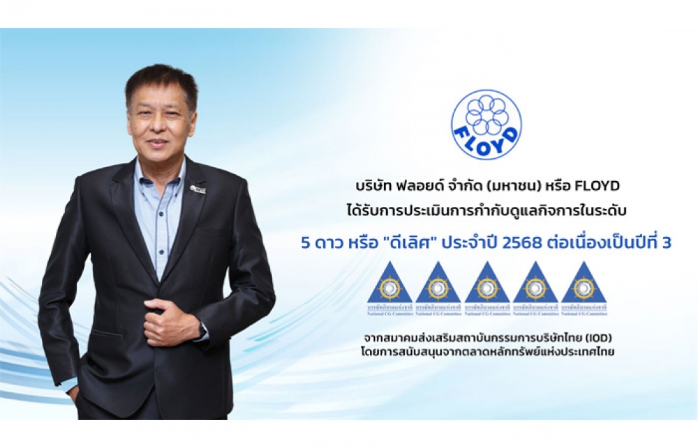 FLOYD ได้รับการประเมิน CGR ในเกณฑ์ “ดีเลิศ” ระดับ 5 ดาว