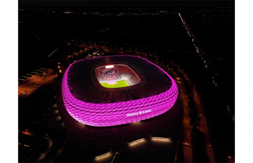 สนามอลิอันซ์ อารีน่า เปิดไฟสีชมพู ตระหนักรู้ป้องกันมะเร็งเต้านม
