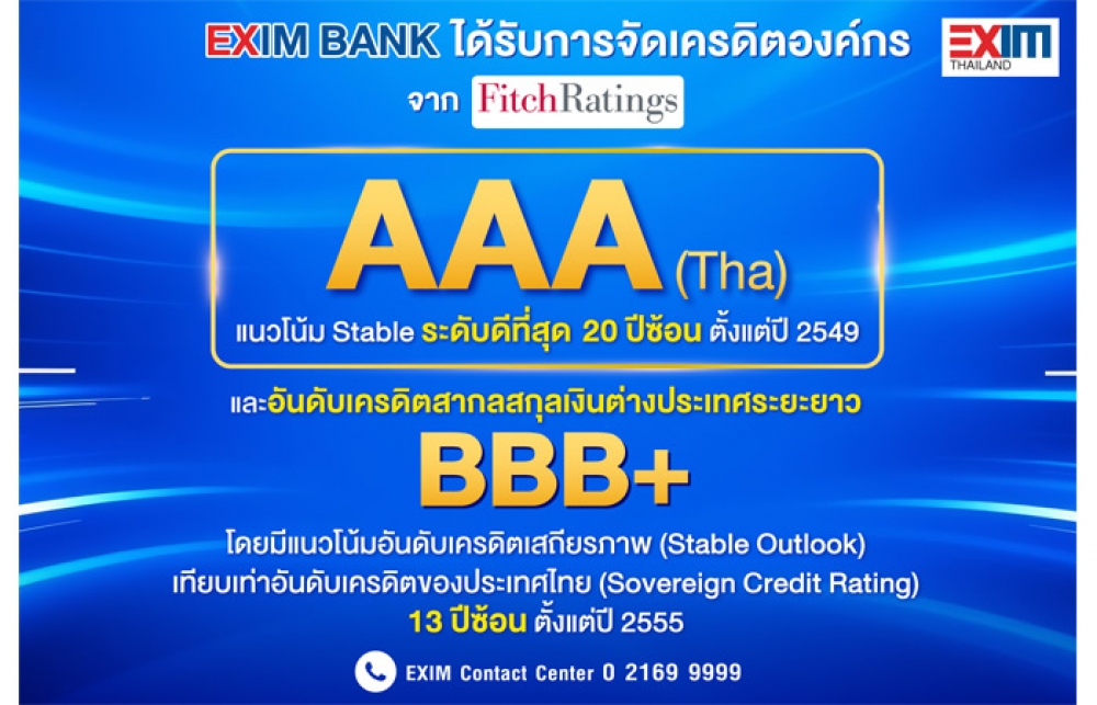 EXIM BANK โชว์แกร่ง รักษาอันดับเครดิตที่ระดับ AAA