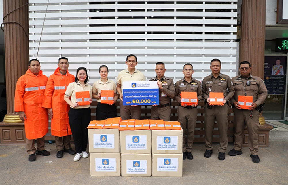 วิริยะประกันภัย สนับสนุนเสื้อกันฝนสะท้อนแสง กองบังคับการตำรวจนครบาล 5