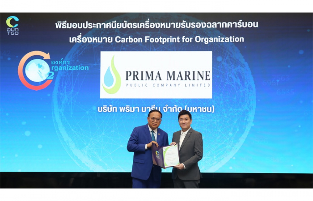 PRM รับมอบประกาศนียบัตร เครื่องหมายคาร์บอนฟุตพริ้นท์