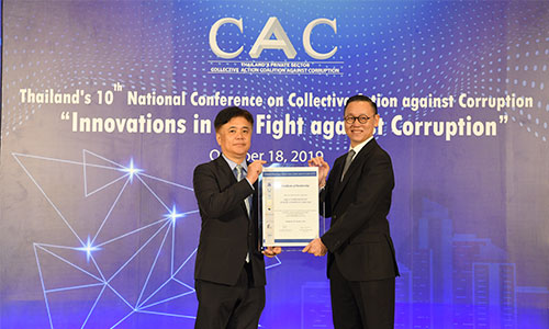 AQUA รับมอบใบประกาศนียบัตรแสดงเจตนารมณ์ร่วมต่อต้านคอร์รัปชันและการจ่ายสินบน ปี 2019