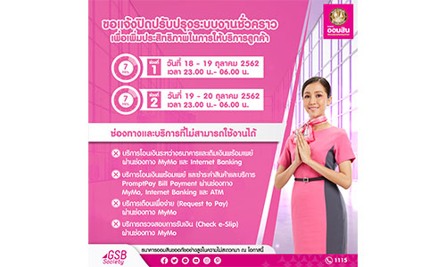 ออมสิน ปิดปรับปรุงระบบพร้อมเพย์ 18-20 ต.ค.62