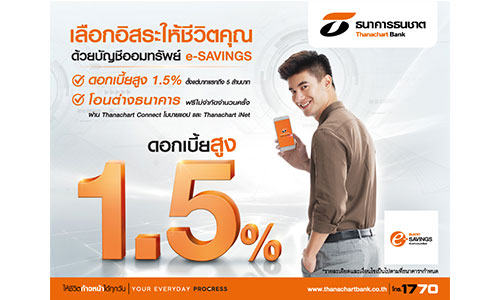 ธนชาตชวนออม กับ e-SAVINGS ดอกเบี้ยสูงสุด 1.5%