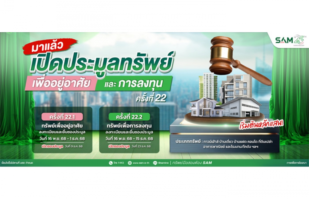 SAM เปิดประมูลทรัพย์ NPA ส่งท้ายปี มูลค่าเกือบ 300 ลบ.