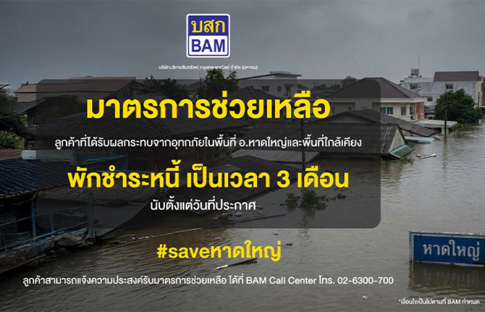 BAM พักชำระหนี้ 3 เดือน ช่วยลูกค้าประสบภัยน้ำท่วมภาคใต้