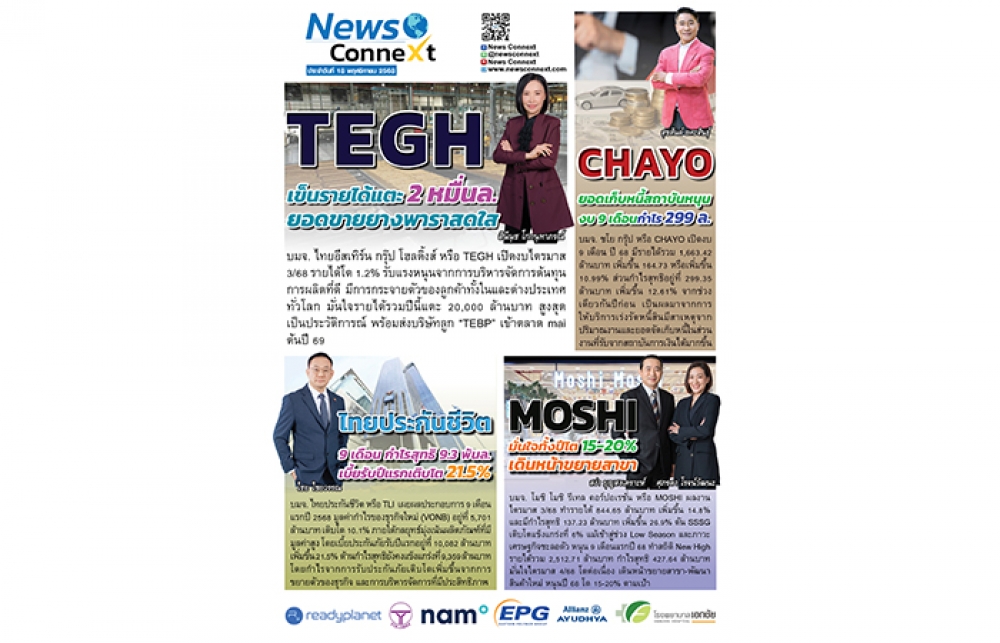 TEGH เข็นรายได้แตะ 2 หมื่นล. - CHAYO ยอดเก็บหนี้สถาบันหนุน งบ 9 เดือนกำไร 299 ล.