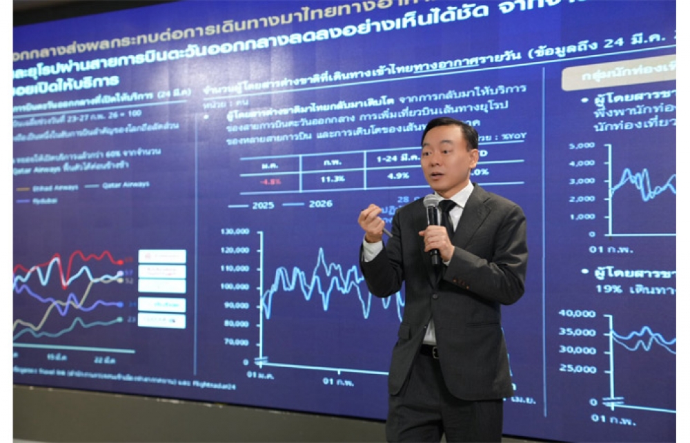 เมื่อวันที่ 27 มีนาคม 2569 ดร.ยรรยง ไทยเจริญ ประธานเจ้าหน้าที่บริหารสายงานวิจัยเศรษฐกิจและความยั่งยืน ศูนย์วิจัยเศรษฐกิจและธุรกิจ ธนาคารไทยพาณิชย์ (SCB EIC) เปิดเผยว่า SCB EIC ปรับลดประมาณการเศรษฐกิจไทยปี 2569 เหลือ 1.4% จากเดิมคาดขยายตัว 1.8% จากผลกระทบของสงครามตะวันออกกลาง ที่ทำให้ราคาพลังงานและสินค้าโภคภัณฑ์สูงขึ้นมาอย่างรวดเร็ว อัตราเงินเฟ้อทั่วไปไทยเฉลี่ยทั้งปีจะเร่งตัวขึ้นมากเกินกรอบเป้าหมายของ ธปท. อยู่ที่ 3.2%