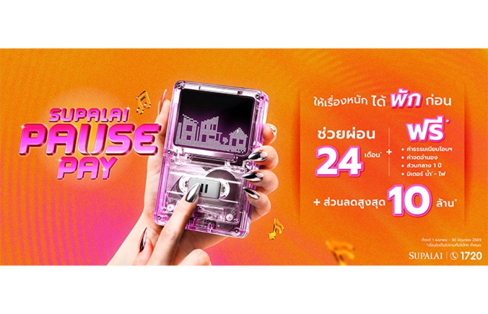 ทั้งนี้ถึงเวลาของคนอยากมีบ้านที่จะเริ่มต้นได้ง่ายกว่าเดิม กับแคมเปญ “Supalai Pause Pay” เปิดให้จองตั้งแต่วันที่ 1 เมษายน - 30 มิถุนายน 2569 สำหรับโครงการศุภาลัยที่ร่วมรายการทั่วประเทศ ผู้สนใจสามารถเยี่ยมชมโครงการศุภาลัย เพื่อสัมผัสบ้านพร้อมอยู่ด้วยตัวเอง พร้อมรับโปรโมชันใหญ่แห่งปีที่ช่วยให้การมีบ้านเป็นเรื่องง่ายยิ่งขึ้น ตรวจสอบรายชื่อโครงการบ้านและคอนโดมิเนียมที่เข้าร่วมรายการได้ที่ www.supalai.com, Facebook : Supalai หรือสอบถามข้อมูลเพิ่มเติมโทร. 1720 (* เงื่อนไขเป็นไปตามที่บริษัทฯ กำหนด)