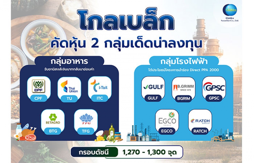 “โกลเบล็ก” คัดหุ้น 2 กลุ่มเด็ดน่าลงทุน “อาหาร-โรงไฟฟ้า”