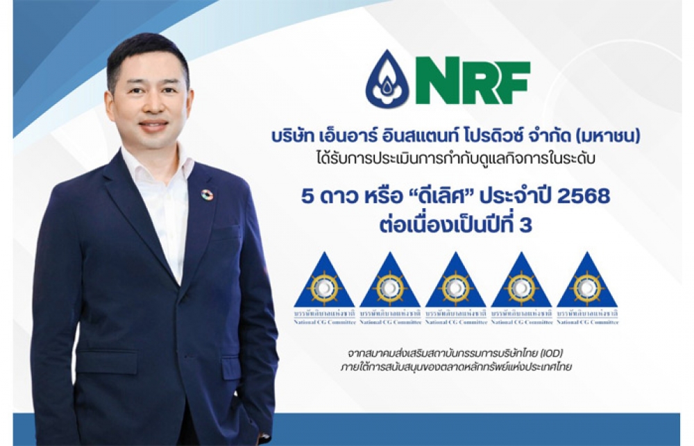 นิวส์ คอนเน็คท์ - บริษัท เอ็นอาร์ อินสแตนท์ โปรดิวซ์ จำกัด (มหาชน) หรือ NRF แสดงศักยภาพด้านธรรมาภิบาลธุรกิจอย่างต่อเนื่อง โดยติดอันดับการประเมินการกำกับดูแลกิจการบริษัทจดทะเบียน ประจำปี 2568 (Corporate Governance Report of Thai Listed Companies 2025: CGR 2025) ในระดับ “ดีเลิศ” หรือ 5 ดาว จากสมาคมส่งเสริมสถาบันกรรมการบริษัทไทย (IOD) โดยมีตลาดหลักทรัพย์แห่งประเทศไทย (SET) เป็นผู้สนับสนุน โดยผลการประเมินดังกล่าวสะท้อนถึงความมุ่งมั่นของ NRF ในการดำเนินธุรกิจด้วยหลักธรรมาภิบาล โปร่งใส ตรวจสอบได้ และให้ความสำคัญกับผู้มีส่วนได้เสียทุกภาคส่วน บริษัทบริหารจัดการตามมาตรฐานสากล พร้อมผสานแนวคิดด้านสิ่งแวดล้อม สังคม และบรรษัทภิบาล (ESG) เข้ากับกลยุทธ์ธุรกิจอย่างเป็นรูปธรรม เพื่อสร้างสมดุลระหว่างการเติบโตขององค์กรและการพัฒนาที่ยั่งยืน