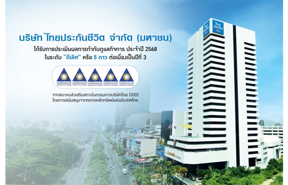ไทยประกันชีวิต ได้คะแนน CGR ระดับดีเลิศ 5 ดาว ต่อเนื่องปีที่ 3