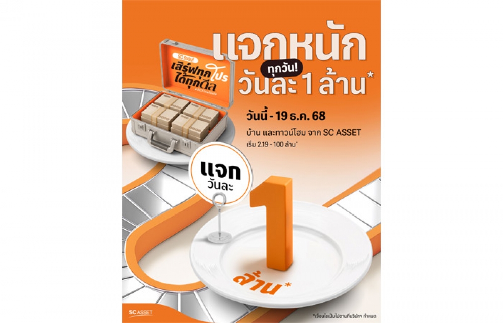 นิวส์ คอนเน็คท์ - เอสซี แอสเสท ผู้นำตลาดที่อยู่อาศัยระดับพรีเมียม และ แบรนด์คุณภาพอันดับ1 เดินหน้าเขย่าตลาดอสังหาฯ ช่วงโค้งสุดท้ายของปี ด้วยการเปิดตัวแคมเปญใหญ่ “SC Final Sale” มอบข้อเสนอที่แรงที่สุดแห่งปี แจกหนักทุกวัน วันละ 1 ล้านบาท ตั้งแต่วันนี้ – 19 ธันวาคม 2568 เท่านั้น พร้อมเสิร์ฟดีลพิเศษแบบ “เอสซีรับจบ” ให้ลูกค้าได้ทุกโปร ทุกดีลแบบไม่มีกั๊ก ครอบคลุมบ้านเดี่ยว และ ทาวน์โฮม โครงการคุณภาพในทุกเซกเมนต์ของบริษัท