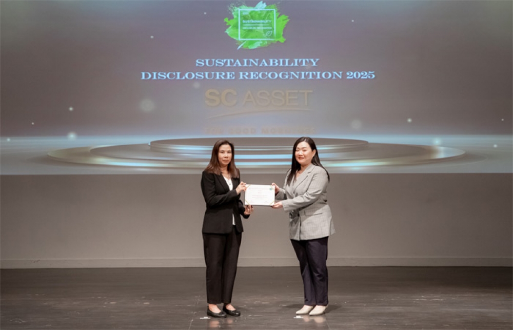 นิวส์ คอนเน็คท์ - บริษัท เอสซี แอสเสท คอร์ปอเรชั่น จำกัด (มหาชน) หรือ SC โดยนางสาว ฉัตราพร สมสุขสวัสดิ์กุล Sustainability Manager เป็นผู้แทนบริษัท รับรางวัลประกาศเกียรติคุณการเปิดเผยข้อมูลความยั่งยืน หรือ Sustainability Disclosure Awards ประจำปี 2568 ประเภท Sustainability Disclosure Recognition 2025 จากสถาบันไทยพัฒน์ โดยมีนางสาววีรญา ปรียาพันธ์ ผู้อำนวยการประชาคมการเปิดเผยข้อมูลความยั่งยืน สถาบันไทยพัฒน์เป็นผู้แทนมอบรางวัล ณ ห้องออดิทอเรียม ชั้น 5 หอศิลปะกรุงเทพฯ