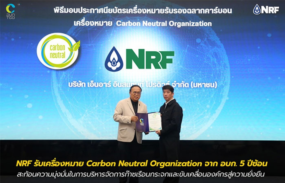 การได้รับการรับรองในครั้งนี้สะท้อนถึงความมุ่งมั่นของ NRF ในการดำเนินธุรกิจควบคู่ไปกับความรับผิดชอบต่อสิ่งแวดล้อม โดยบริษัทให้ความสำคัญกับการบริหารจัดการก๊าซเรือนกระจกอย่างเป็นระบบ ทั้งในมิติของการประเมินการปล่อยก๊าซเรือนกระจก การวางแผนลดการปล่อย และการชดเชยการปล่อยส่วนที่ยังหลีกเลี่ยงไม่ได้ตามแนวทางที่สอดคล้องกับหลักเกณฑ์ของ อบก.
