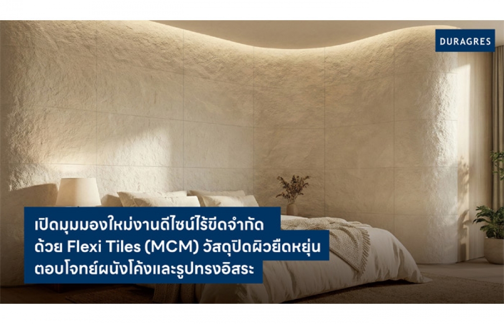 นิวส์ คอนเน็คท์ - บริษัท สหโมเสคอุตสาหกรรม จำกัด (มหาชน) หรือ UMI ผู้ผลิตและจัดจำหน่ายกระเบื้องคุณภาพชั้นนำของประเทศไทย ภายใต้แบรนด์ ดูราเกรส (Duragres) และ เซอเกรส (Cergres) เดินหน้าพัฒนานวัตกรรมวัสดุตกแต่งอาคาร เพื่อตอบโจทย์งานออกแบบยุคใหม่ ล่าสุดชวนปลดล็อกงานดีไซน์แบบไร้ขีดจำกัดให้ผนังโค้งสวยด้วย Flexi Tiles (MCM) วัสดุปิดผิวและตกแต่งอาคารที่ช่วยปลดล็อกข้อจำกัดด้านงานดีไซน์ ที่ทำให้ผนังโค้ง เสาอาคาร เคาน์เตอร์บาร์ทรงอิสระ หรือผนัง Facade สามารถปิดผิวได้อย่างสวยงาม เรียบเนียน ด้วยลวดลายหินธรรมชาติที่สมจริง