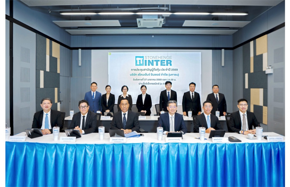 นิวส์ คอนเน็คท์ - บริษัท สโตนเฮ้นจ์ อินเตอร์ จำกัด (มหาชน) หรือ STI ผู้นำด้านธุรกิจวิศวกรที่ปรึกษาบริหารและควบคุมงานก่อสร้างครบวงจร นำโดย นายจุมพล สำเภาพล (ที่ 3 จากซ้าย) ประธานกรรมการ นายสมเกียรติ ศิลวัฒนาวงศ์ (ที่ 2 จากขวา) ประธานเจ้าหน้าที่บริหาร พร้อมด้วยคณะกรรมการบริษัท จัดประชุมสามัญผู้ถือหุ้น ประจำปี 2569 ณ ศูนย์ฝึกอบรม STI Academy ผ่านสื่ออิเล็กทรอนิกส์ (E-AGM) เมื่อวันที่ 27 มกราคม 2569 ที่ผ่านมา