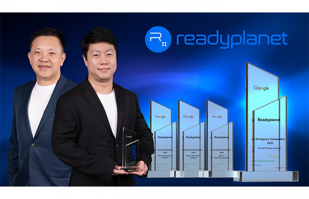 การคว้ารางวัลชนะเลิศติดต่อกันถึง 4 ปีซ้อนจาก Google ประเทศไทย เป็นสิ่งยืนยันว่า Readyplanet เดินหน้าสร้างสรรค์ Marketing Technology เพื่อสร้างความสำเร็จให้กับลูกค้าอย่างต่อเนื่องตลอดมา