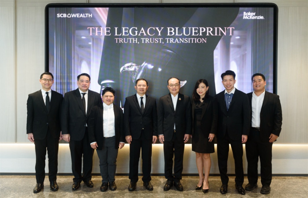นิวส์ คอนเน็คท์ - SCB WEALTH ร่วมกับ Baker & McKenzie จัดงานสัมมนา The Legacy Blueprint ภายใต้ธีม Truth Trust Transition เพื่อถอดรหัสการวางรากฐานธุรกิจครอบครัวและการส่งต่อความมั่งคั่งอย่างยั่งยืนให้กับกลุ่มลูกค้า SCB Private Banking และกลุ่มลูกค้า Baker & McKenzie ท่ามกลางความท้าทายของเศรษฐกิจยุคใหม่และการเปลี่ยนผ่านธุรกิจจากรุ่นสู่รุ่น โดยนายศรชัย สุเนต์ตา (ที่ 5 จากขวา) รองผู้จัดการใหญ่ Deputy Head of High Net Worth and Affluent Banking ธนาคารไทยพาณิชย์ นางสาวศลิษา หาญพานิช (ที่ 6 จากขวา) ผู้ช่วยผู้จัดการใหญ่ High Net Worth and Affluent Segment และรักษาการผู้ช่วยผู้จัดการใหญ่ Wealth and Insurance Capability Development ธนาคารไทยพาณิชย์ นายอรรถพงศ์ พรธิติ (ที่ 7 จากขวา) Head of Private Banking Relationship Management ธนาคารไทยพาณิชย์ และ ดร.นิติ เนื่องจำนงค์ (ที่ 8 จากขวา) Head of Wealth Planning and Family Office ธนาคารไทยพาณิชย์ ร่วมให้การต้อนรับวิทยากรรับเชิญ ได้แก่ ศาสตราจารย์พิเศษ กิติพงศ์ อุรพีพัฒนพงศ์ (ที่ 4 จากขวา) ประธานกรรมการ ตลาดหลักทรัพย์แห่งประเทศไทย (SET) และ นายนิติกานต์ รามนัฏ (ที่ 1 จากขวา) ทนายความหุ้นส่วน บริษัท เบเคอร์ แอนด์ แม็คเค็นซี่ จำกัด ได้ร่วมแบ่งปันมุมมองเชิงลึกเกี่ยวกับกรอบแนวคิด การออกแบบอนาคตของธุรกิจครอบครัว เพื่อให้การส่งต่อธุรกิจและความมั่งคั่งข้ามรุ่นเกิดขึ้นอย่างมั่นคง โปร่งใส และยั่งยืน