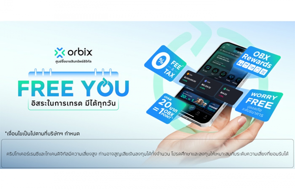 นิวส์ คอนเน็คท์ – orbix ประกาศเดินเกมรุกปี 69 เปิดตัวแคมเปญใหม่ “Free You อิสระในการเทรดมีได้ทุกวัน” มุ่งสร้างประสบการณ์การลงทุนที่ใช้งานง่าย ยืดหยุ่น และมีข้อมูลช่วยตัดสินใจอย่างมั่นใจ รองรับไลฟ์สไตล์นักลงทุนสินทรัพย์ดิจิทัลในระยะยาว พร้อมมอบสิทธิพิเศษแก่ลูกค้าใหม่และลูกค้าปัจจุบันอย่างต่อเนื่องตลอดทั้งปี