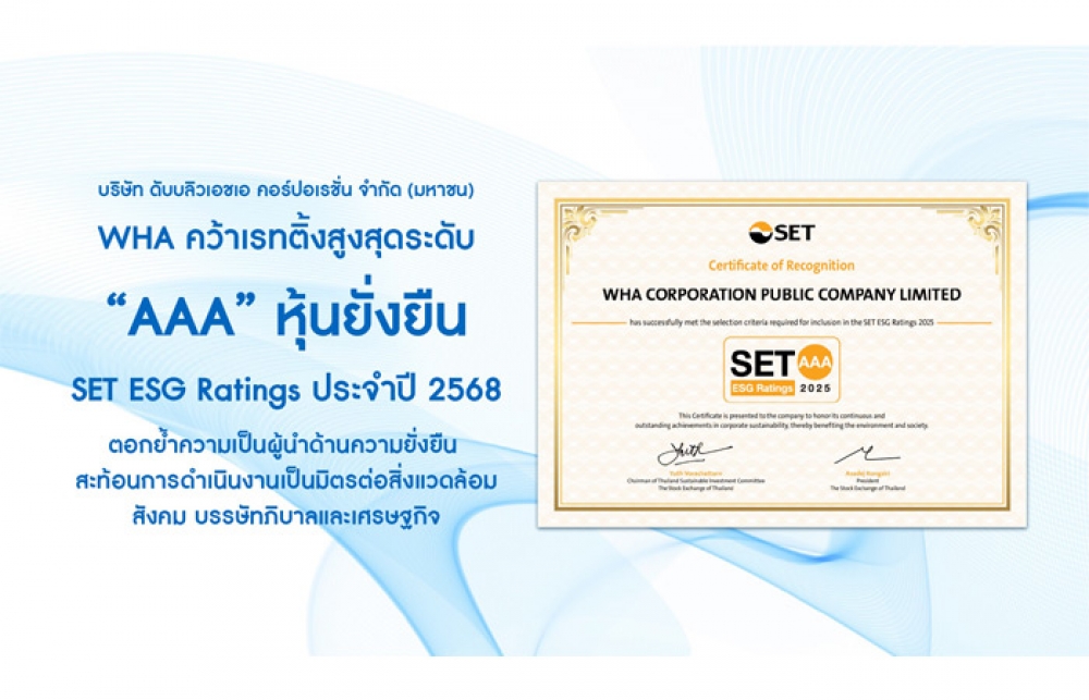 WHA คว้าเรทติ้งสูงสุดระดับ “AAA” SET ESG Ratings ประจำปี 68