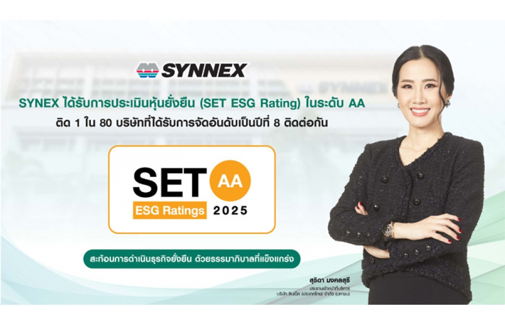 SYNEX ได้รับประเมินหุ้นยั่งยืนในระดับ AA