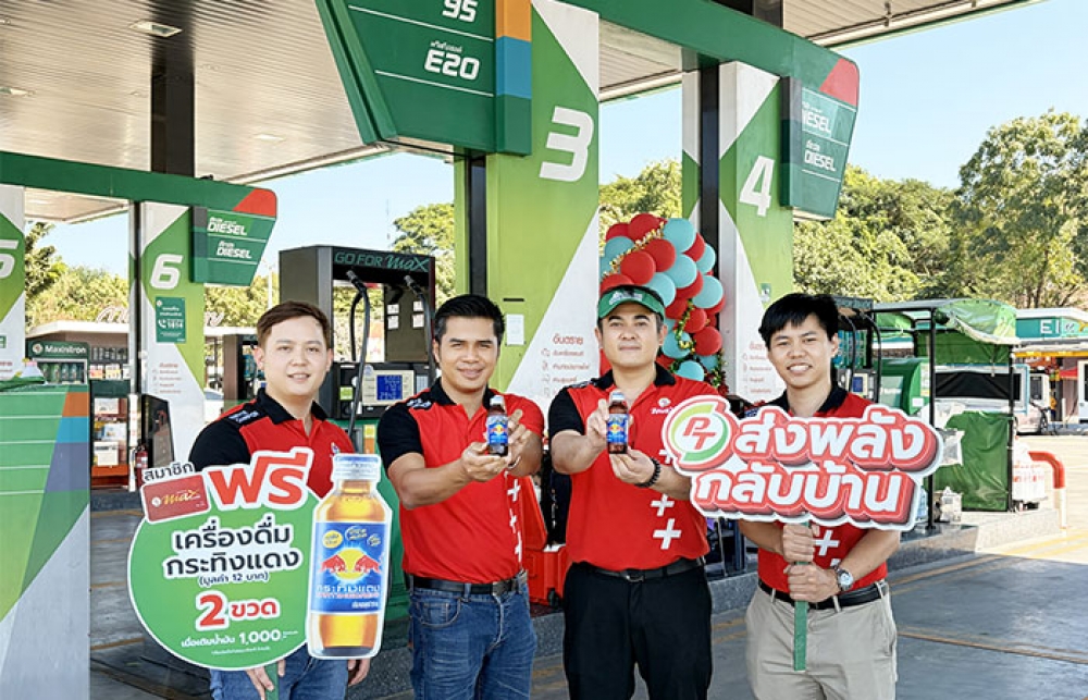พีที ส่งพลังกลับบ้าน เติมน้ำมัน รับฟรี! เครื่องดื่มกระทิงแดง
