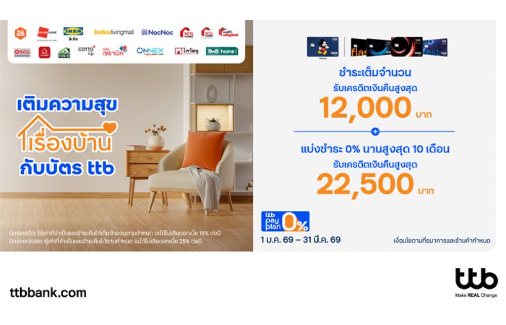 บัตรเครดิต ttb ชวนแต่งบ้านรับปีใหม่ ช้อปคุ้มร้านดัง